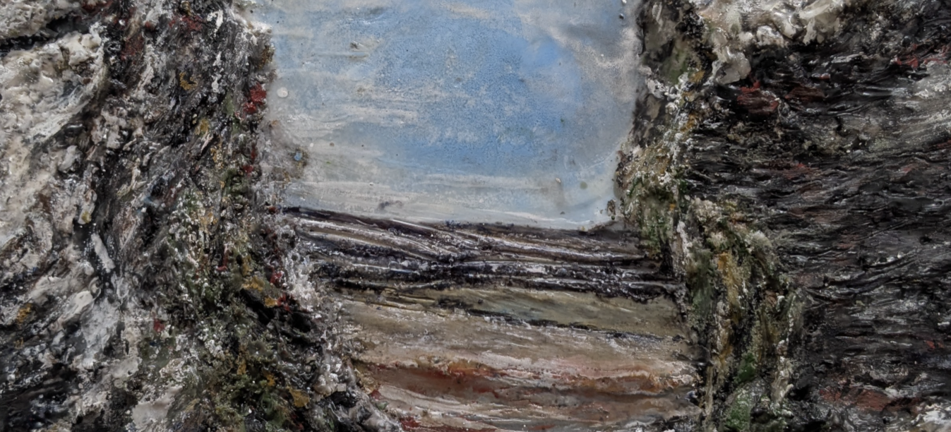 My work references the 19th century landscape tradition to address the plastic pollution disaster we face in the 21st century. Though I will always have a fondness for the energy of Constable’s oil sketches or the experiences Turner expressed in his romantic compositions, it is the Hudson River School that has the most direct influence on what I am painting. We may think of their paintings as quaint or picturesque, but they were made to persuade the public to slow down “The axe of civilization”. They were the activists of their day; their efforts were in a large part responsible for the creation of the National Park system we have today. Rather than make the case for greater environmental protections my work endeavors to instill in my audience a need for better stewardship. I visit the areas my forebears succeeded in protecting and draw attention to the mess we are making of them. I use encaustic because of how physically present the medium is. Through it, I am establishing how these places felt to me in both a physical and empathetic sense. I have a deep love for the environment in all of its varieties. This is why my compositions focus on the condition I find the landscape in. Litter and other forms of pollution heavily taint most of the parks and rivers I have seen. It is a blight on the land that disrupts the tranquility you experience being in nature. Highlighting these occurrences brings this tension back to the galleries for a broader audience to experience. Through this visual conflict I am asking the audience a question, “What is humanity’s relationship with the environments we set aside to preserve?”