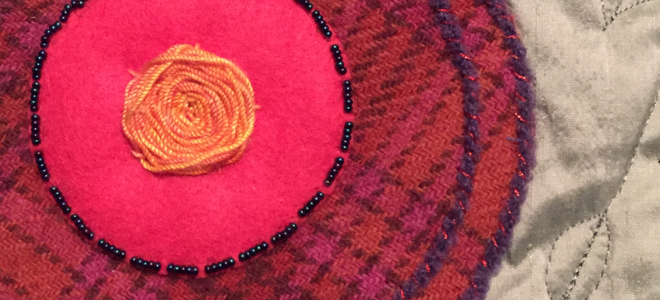 These passions converge in my art quilts. I layer fabric, weaving, threads, beads and found objects to create pieces that express my textured world.